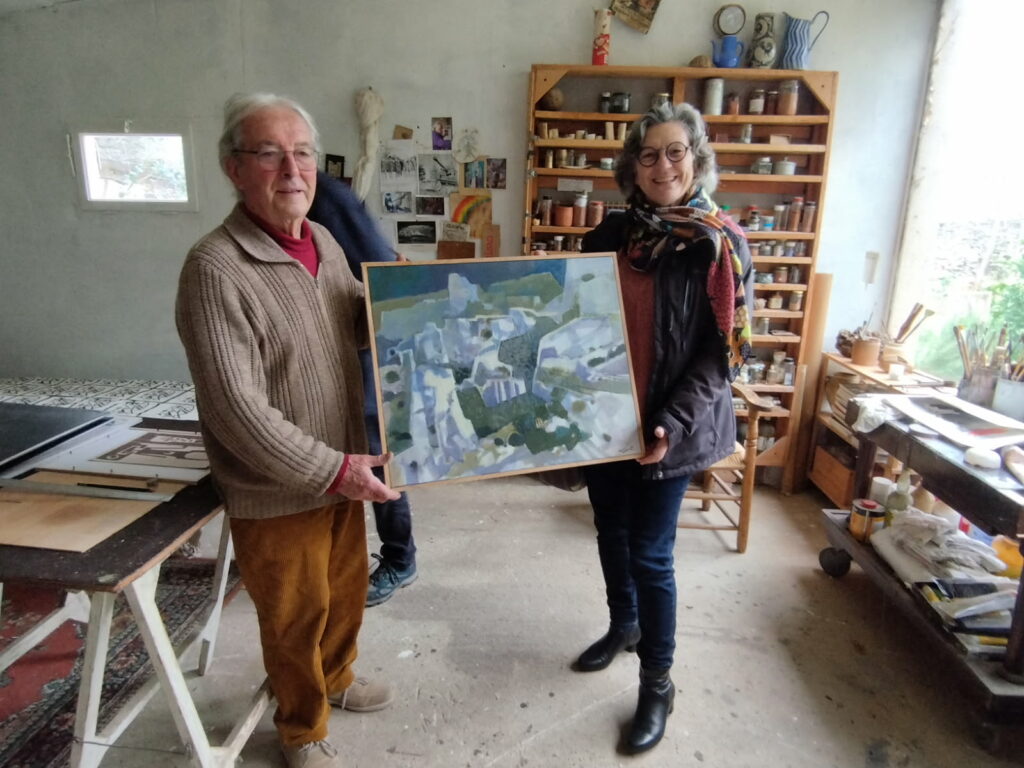 Jeudi 11 décembre, une partie du groupe « Cultures à Manissy » s’est retrouvé dans l’atelier de Pierre CAYOL à Tavel pour la remise du lot : la toile qu’il a offerte pour cette tombola.